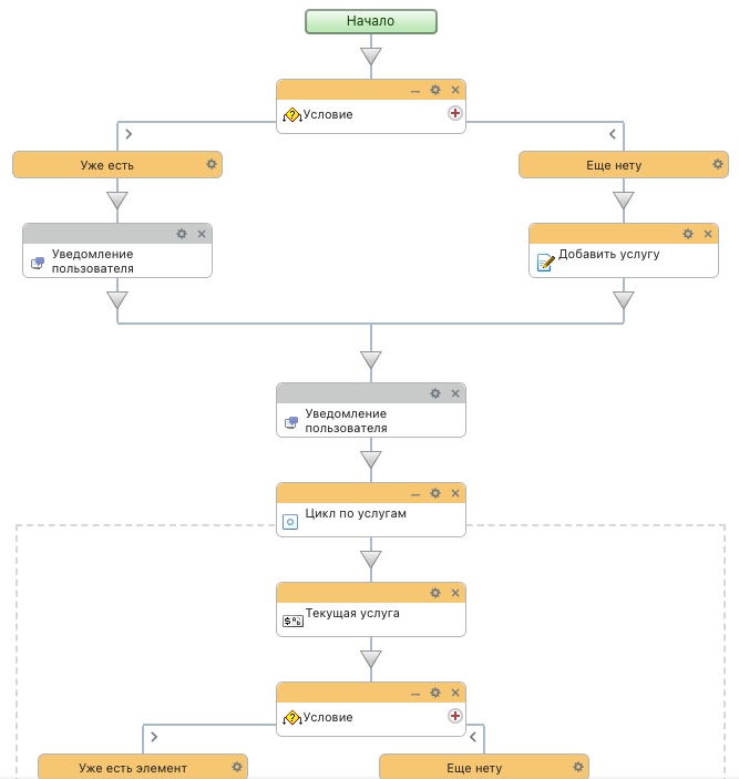 Данный блок позволяет избежать такой ситуации. Он перенаправляет согласование на Помощника руководителя. Отдельно обрабатывается ситуация, когда ищем руководителя самого Помощника. Возникает ситуация, что он сам себе должен согласовывать свою заявку. В таком случае подключается отдельный служебный пользователь.